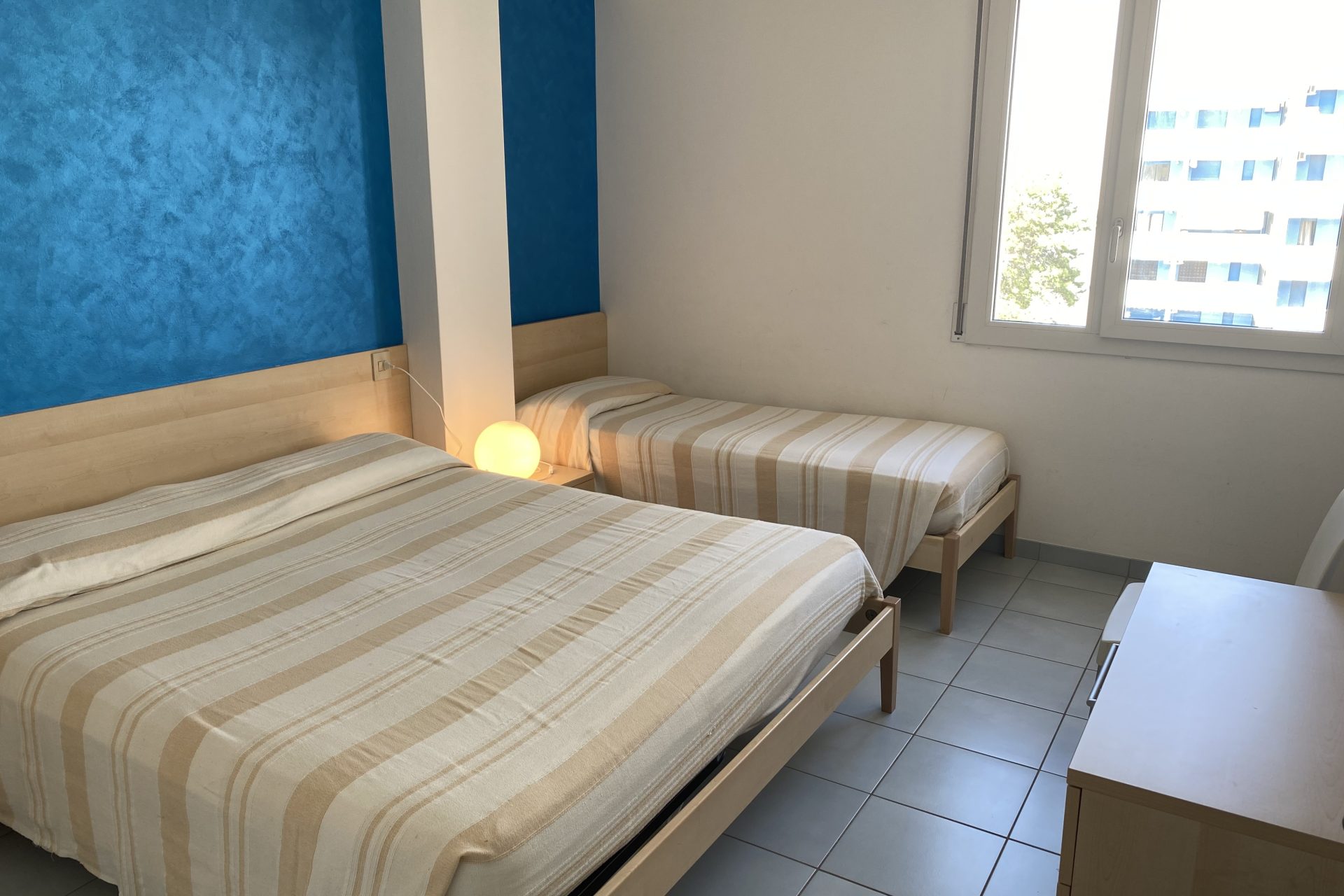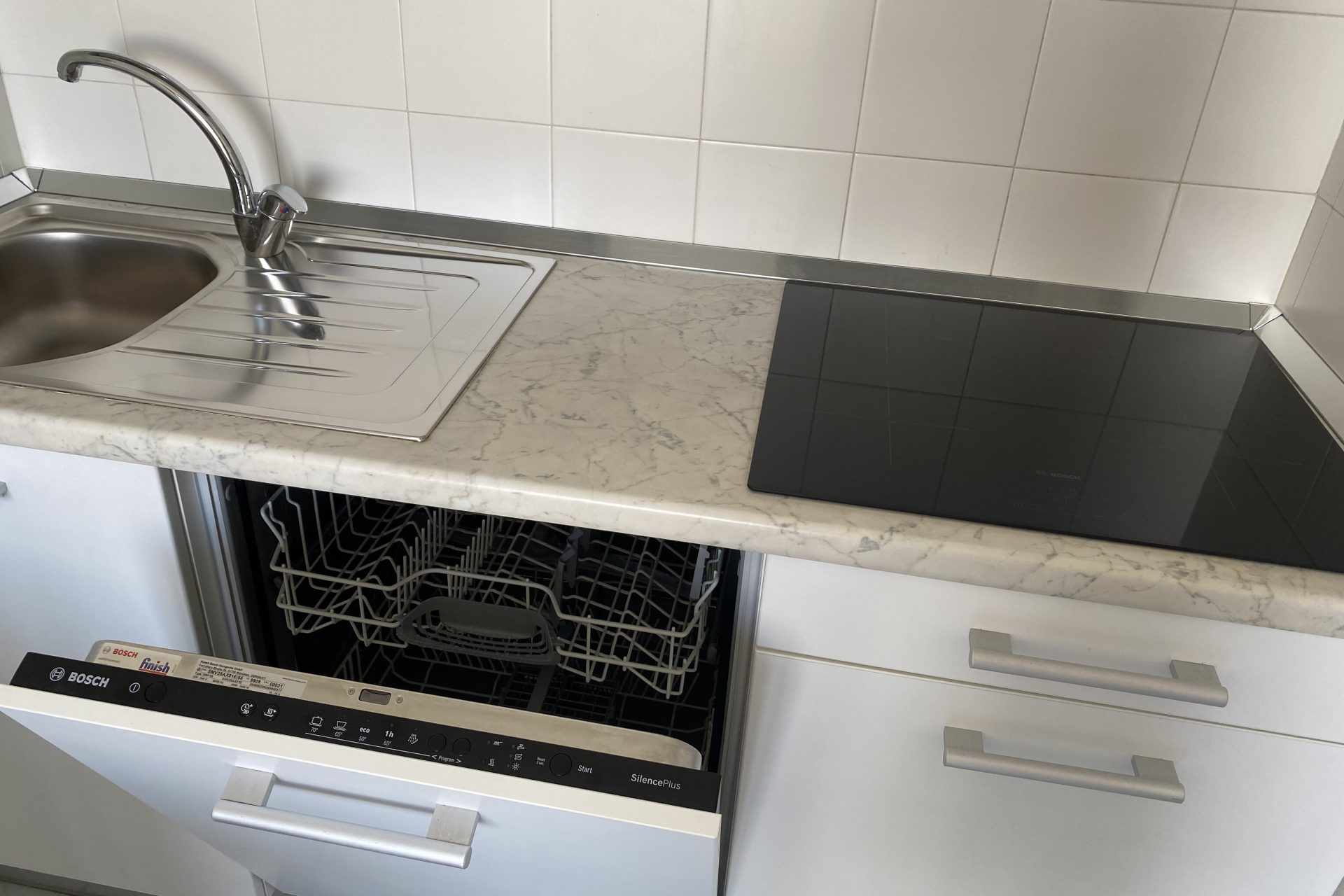Für 3/4 Personen, mit einem Schlafzimmer mit Doppelbett und einem angrenzenden Einzelbett, einem Doppelschlafsofa im Wohnzimmer, einem Wohnzimmer mit Induktionskochfeld, Mikrowelle, großem Kühlschrank mit Gefrierfach, Badezimmer mit Duschkabine, Waschmaschine, Spülmaschine, TV, Klimaanlage, kleine Terrasse, Lärmschutzfenster, reservierter Parkplatz.